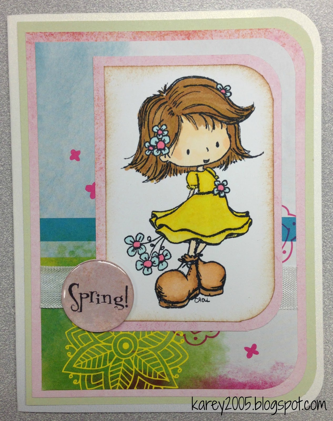 And I created a second card to submit to the challenge. The girl is from Tiddly Inks, and the sentiment is MFP Spring Mini.